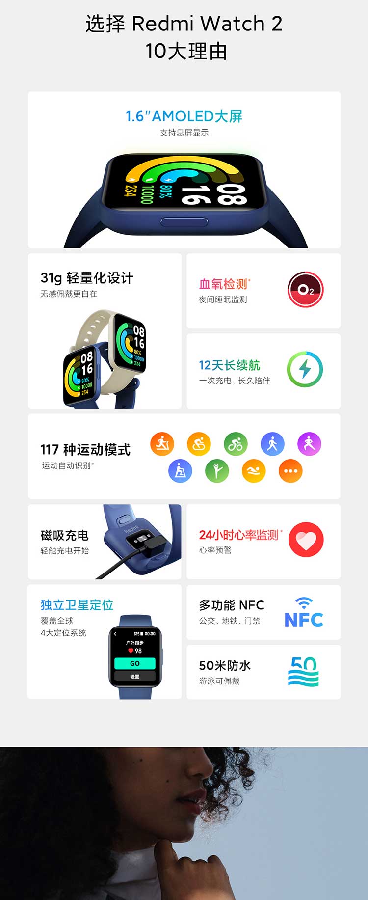 Redmi Watch 2 小米手表 高清大屏 /多種運動(dòng)模式 /超長(cháng)續航 運動(dòng)監測 支持GPS 多功能NFC 紅米手表2