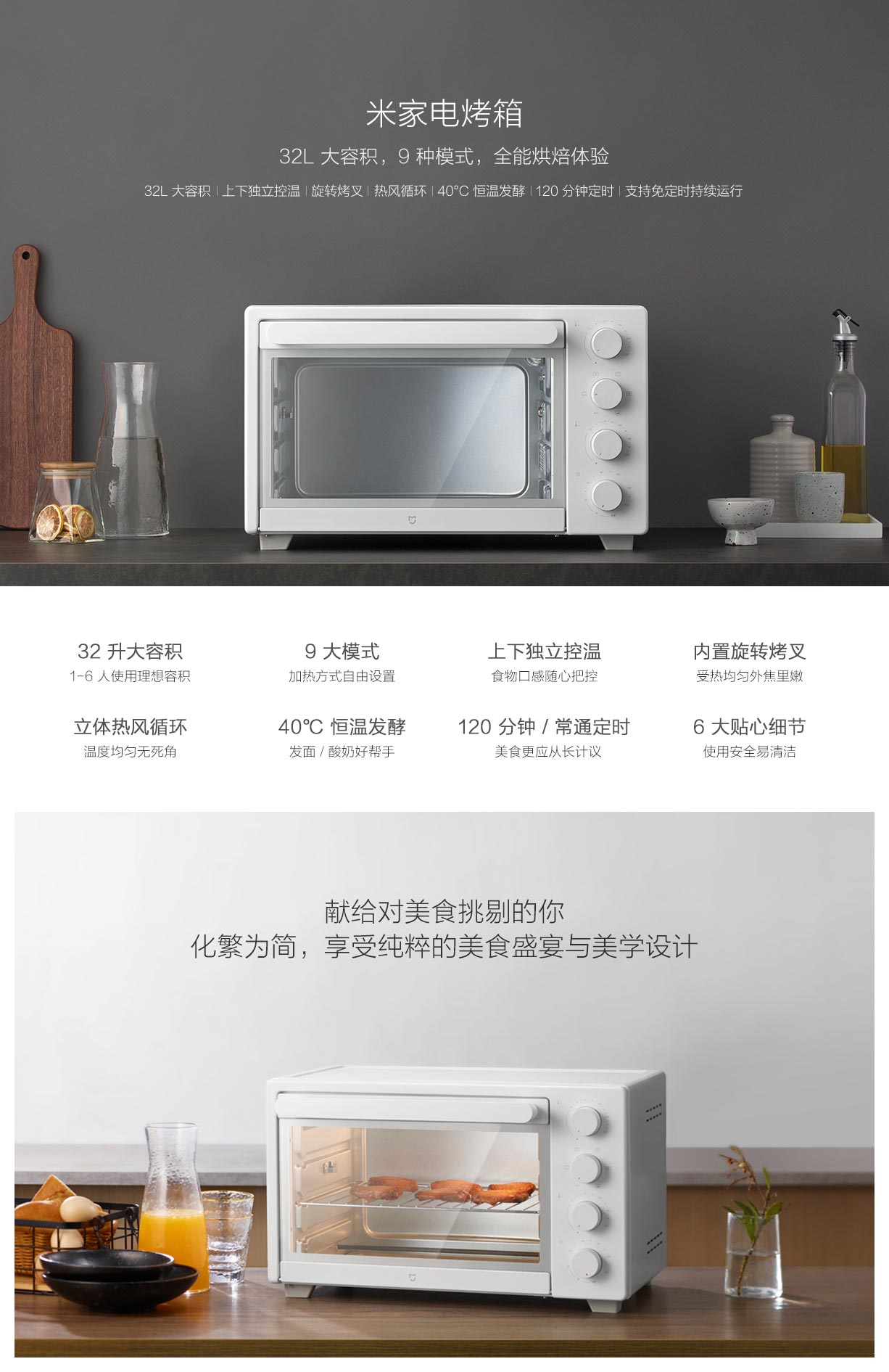 米家 小米電烤箱32L家用 三層烤位 上下獨立控溫 一機多用 70°C-230°C精準控溫 內置烤叉 米家電烤箱